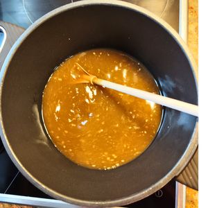 Začneme vývarem - do 600 ml studené vody vsypeme sáček dashi no moto a přidáme sójovku, hon tsuyu i mirin. Společně důkladně promícháme, přivedeme k varu a necháme probublávat cca 10 minut, aby se chutě dobře propojily.