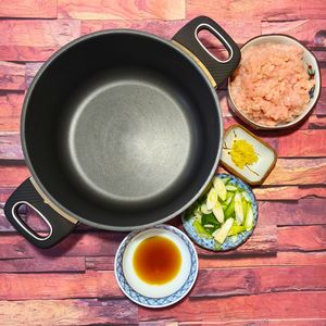 Surovin je na první pohled víc, ale příprava je rychlá a jednoduchá. Základem je kuřecí mleté maso, kvalitní nudle udon a vejce.
