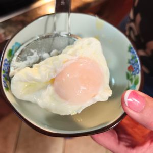 Připravíme zastřené vejce - do vroucí vody na při nižším výkonu kápneme trochu octu, vytvoříme vodní vír a doprostřed vlijeme rozklepnuté vejce. Vaříme 3 až 4 minuty.