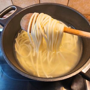 Jakmile se vaří voda na nudle, uvaříme udon dle návodu na etiketě.