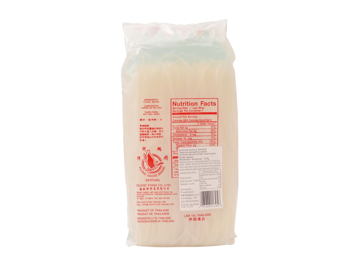 Široké rýžové nudle jsou bezvaječná těstovina. Jsou široké 3 mm a vaří se pouze 3 až 5 minut. Tvoří základ asijských pokrmů a můžou se přidávat i do polévek. Po uvaření je možno tyto nudle smažit v pánvi wok a různě kombinovat s masem a zeleninou a dochucovat rybí, sójovou nebo ústřicovou omáčkou. K těmto nudlím se hodí hovězí maso.