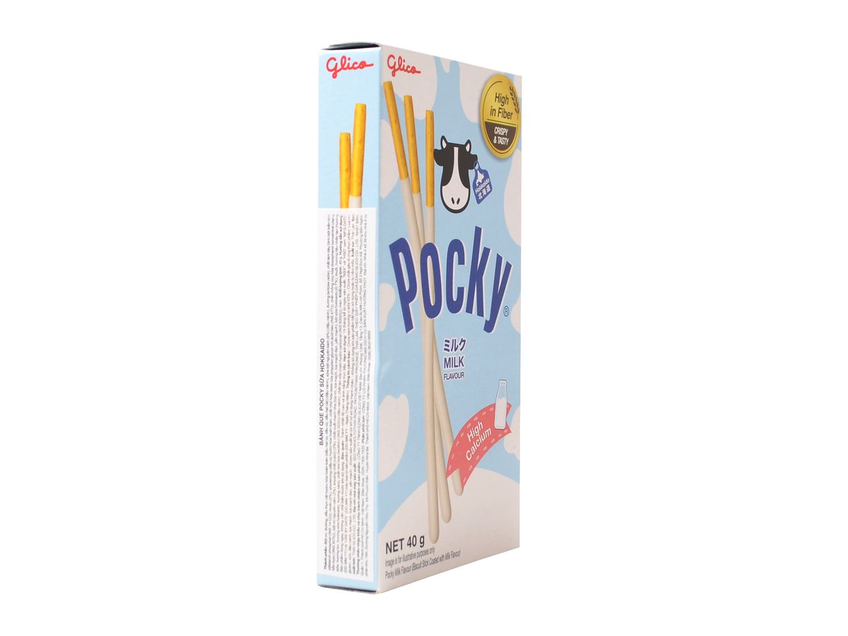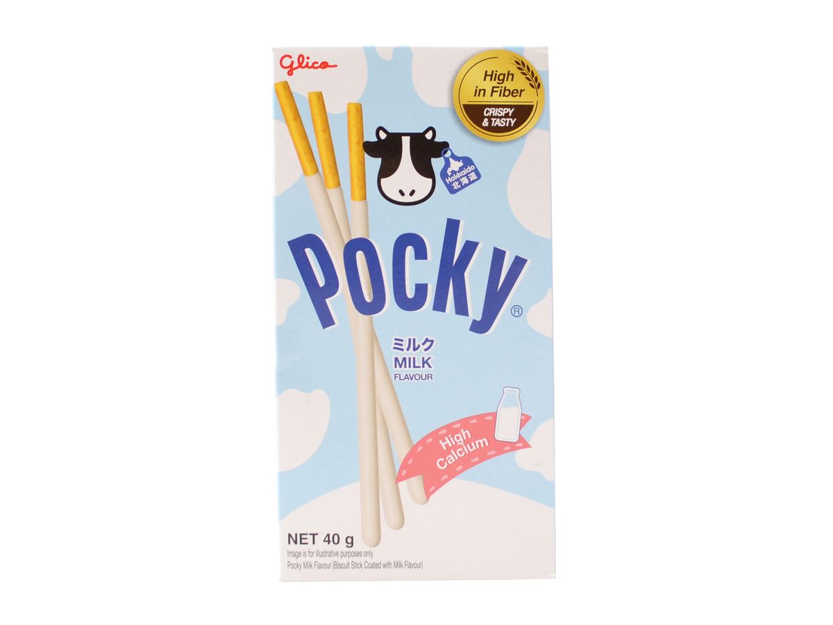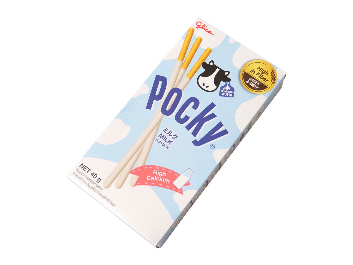 Oblíbené japonské sušenky Pocky, tentokrát s mléčnou polevou. Pocky jsou pšeničné tyčinky polomáčené v polevě. Tato je s příchutí mléka z Hokkaida.