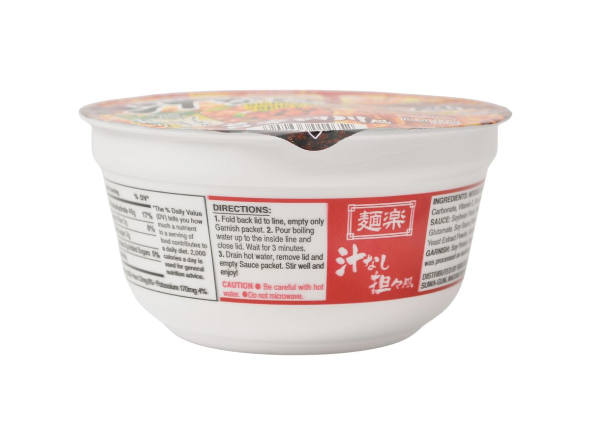 Omáčka: sójová pasta (voda, sójové boby, rýže, sůl), voda, cukr, sezamová chilli olej, sezamová pasta, glutamát sodný, sójová omáčka (voda, pšenice, sójové boby, sůl), sůl, alkohol, čínská fazolová čili omáčka, koření, rýžový ocet, prášek z kvasnicového extraktu, barvivo, paprika, disodium inosinate, disodium guanylate.