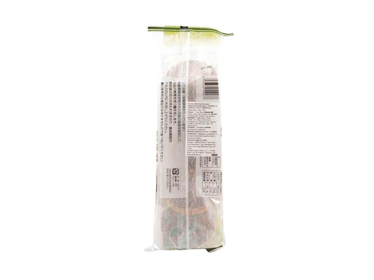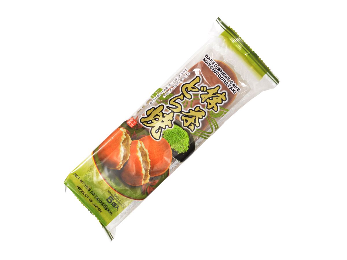 Japonské sladké koláčky dorayaki s fazolovou matcha náplní. Balení obsahuje 5 samostatně balených koláčků.