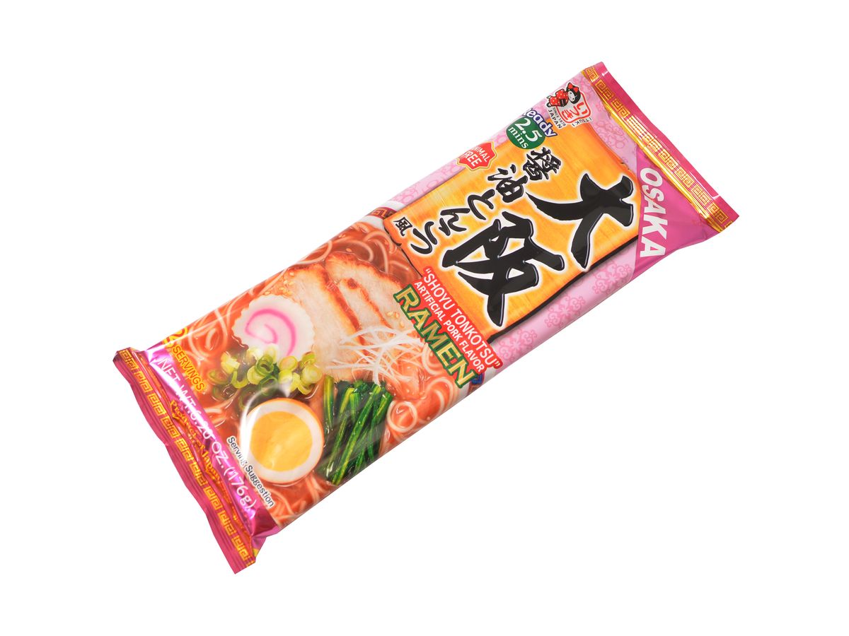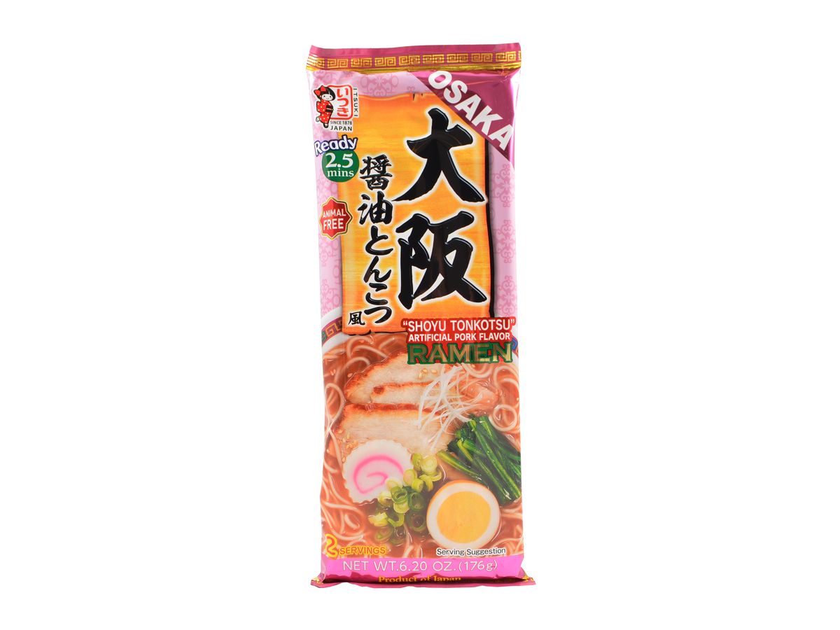 Japonská instantní ramen polévka v Osaka stylu s vepřovou příchutí tonkotsu sójové omáčky. Balení obsahuje celkem dvě porce.
