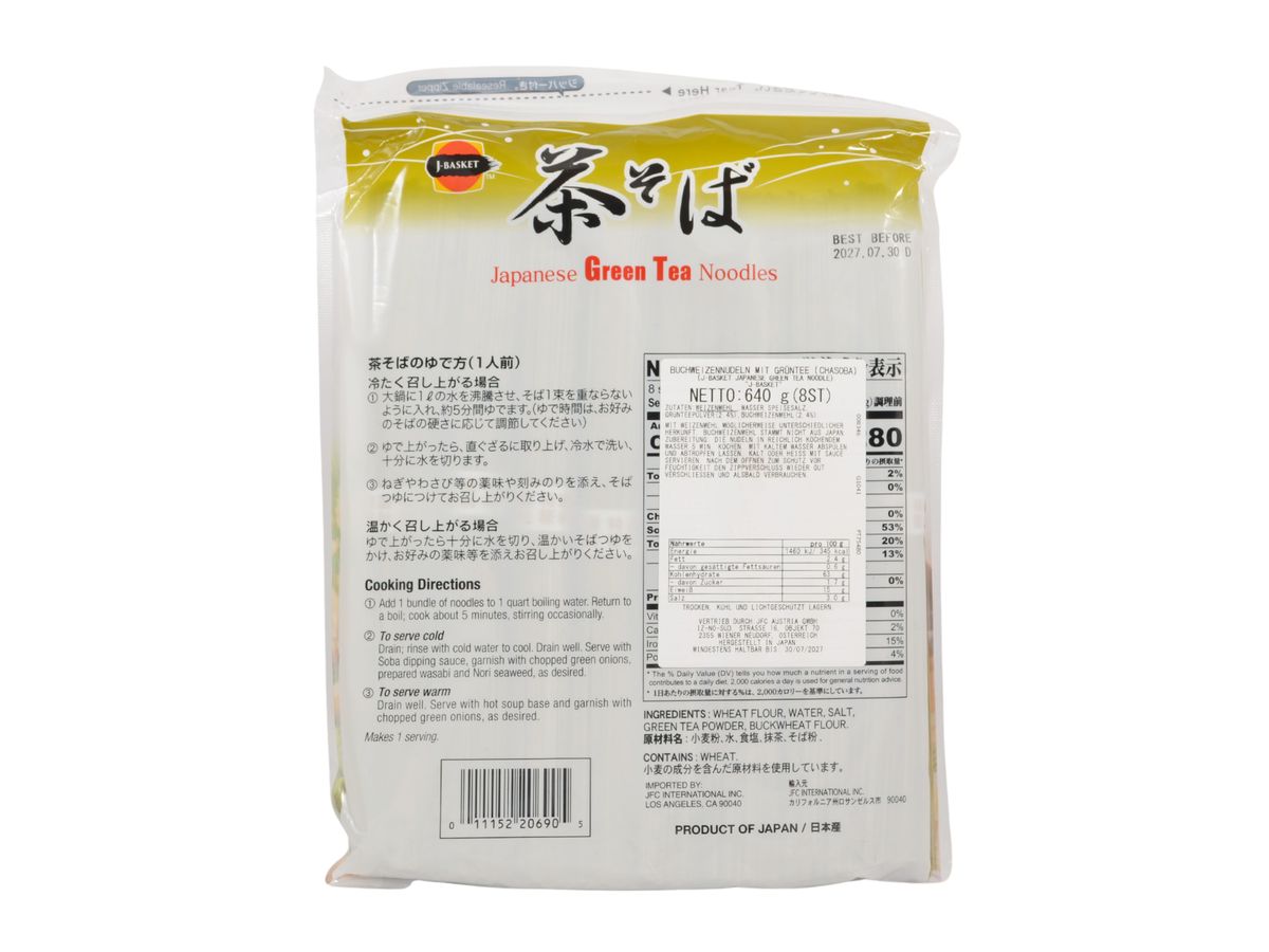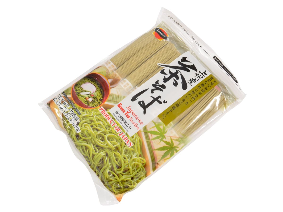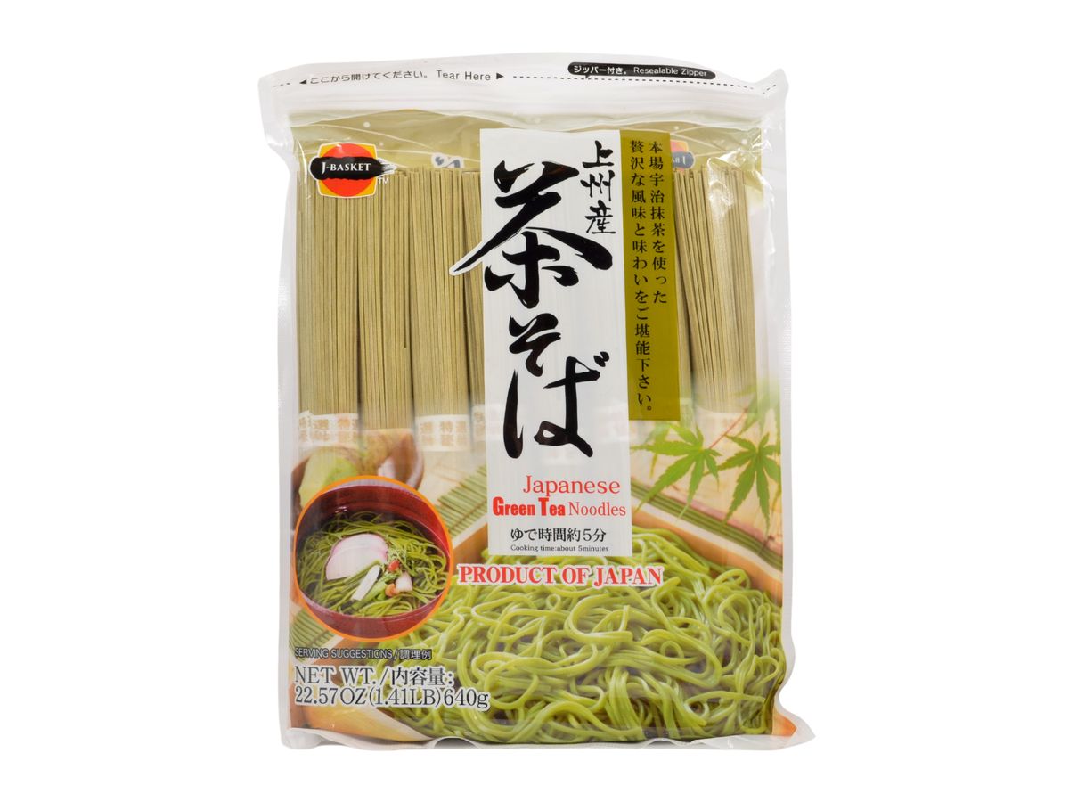 Soba nudle se zeleným čajem jsou tradiční japonské nudle vyrobené z kombinace pšeničné mouky, pohanky a zeleného čajového prášku. Tyto nudle nabízejí jemnou chuť zeleného čaje, jsou ideální pro přípravu lehčích pokrmů a při servírování díky zabarvení působí zajímavě.