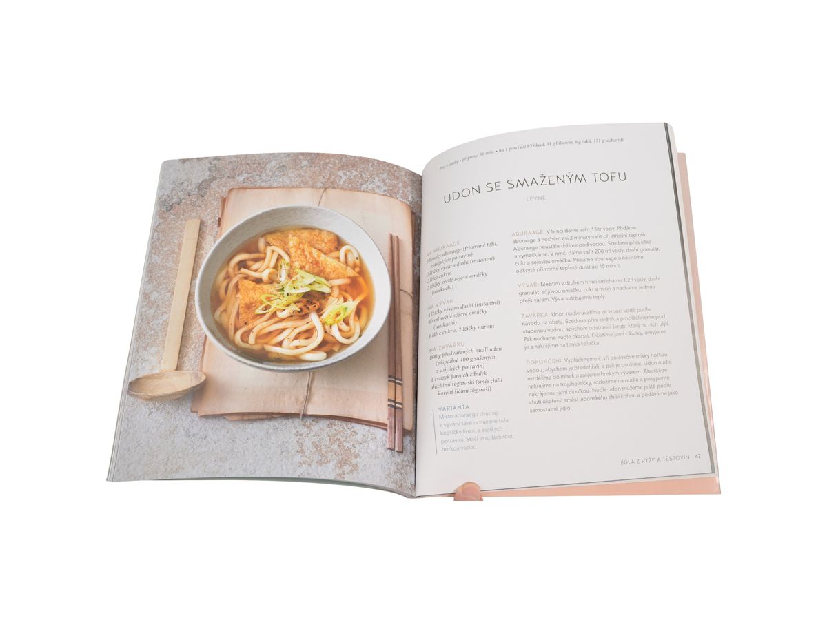 V kuchařce najdete několik receptů v kapitolách rozdělených na hlavní chody, velké a malé přílohy, jídla z rýže a těstovin, sladká jídla a pečivo. Mezi recepty jsou: japonské krokety Korokke, kuře Karaage, palačinky okonomiaki, japonský bramborový salát, rýže s řízkem Katsudon, Gyudon, rýži s kari a ze sladkého třeba plněný dortík Dorayaki.