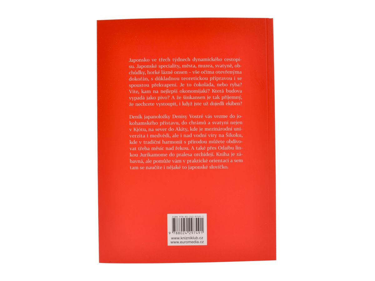 Deník japanoložky Denisy Vostré vás vezme do jokohamského přístavu, do chrámů a svatyní nejen v Kjótu, na sever do Akity, kde je mezinárodní univerzita imedvědi, ale i nad vodní víry na Šikoku. kde v tradiční harmonii s přírodou můžete obdivovat třeba měsíc nad řekou. A také přes Odaibu linkou Jurikamome do pralesa orchidejí. Kniha je zábavná, ale pomůže vám v praktické orientaci a sem tam se naučíte i nějaké to japonské slovíčko.