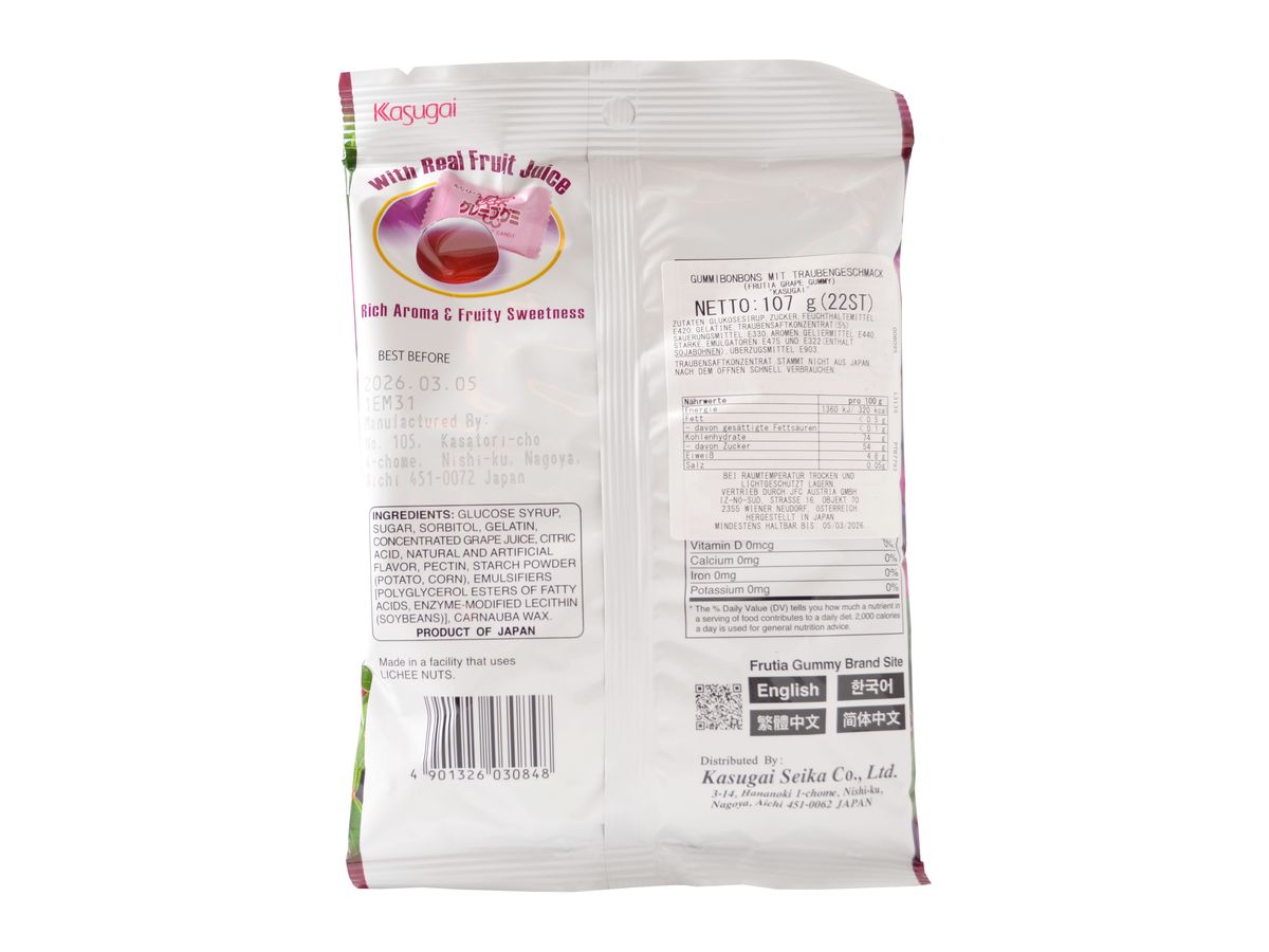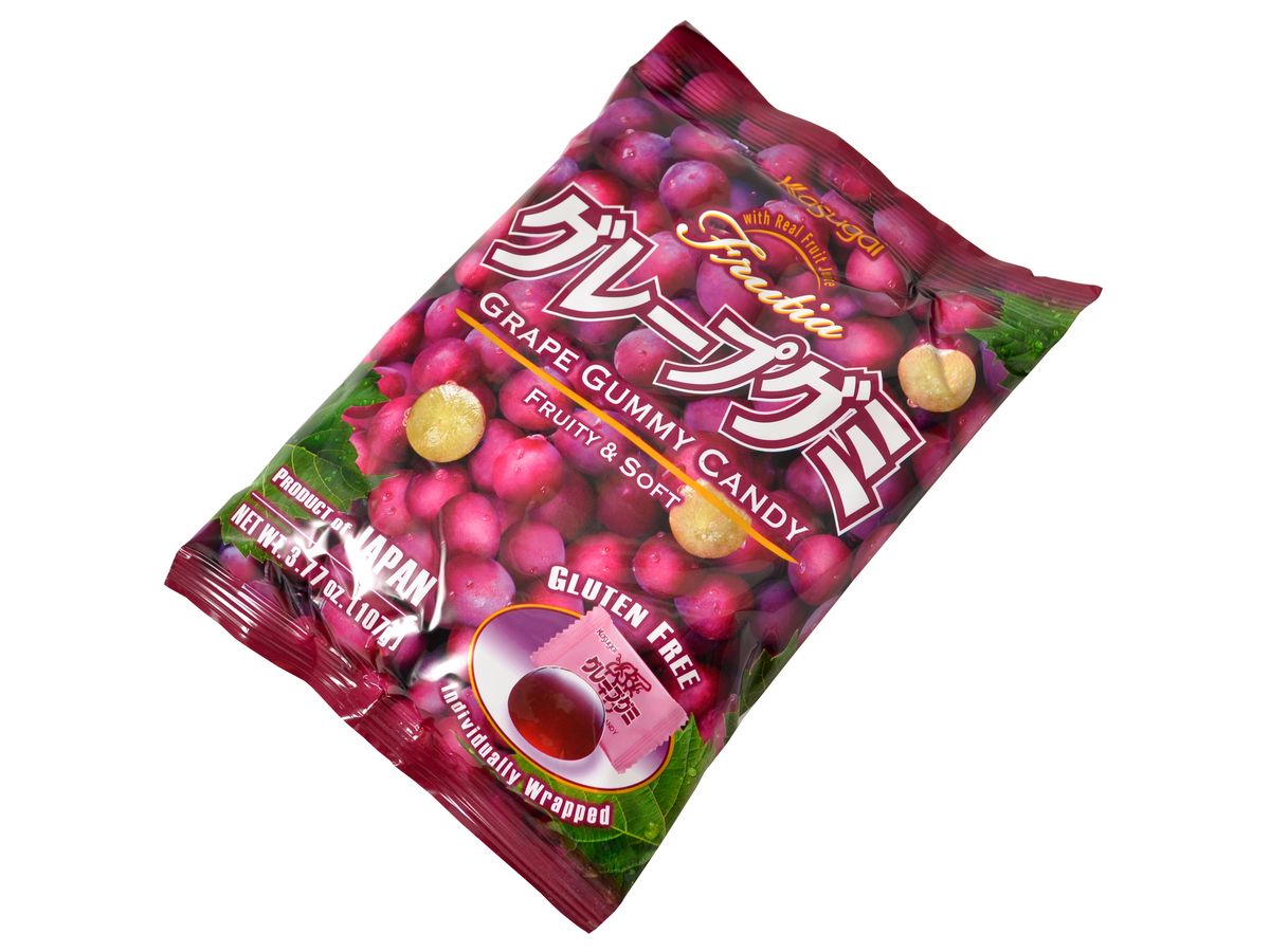 Japonské gumové bonbony s příchutí hroznového vína. V balíčku je 22 individuálně balených bonbonků.