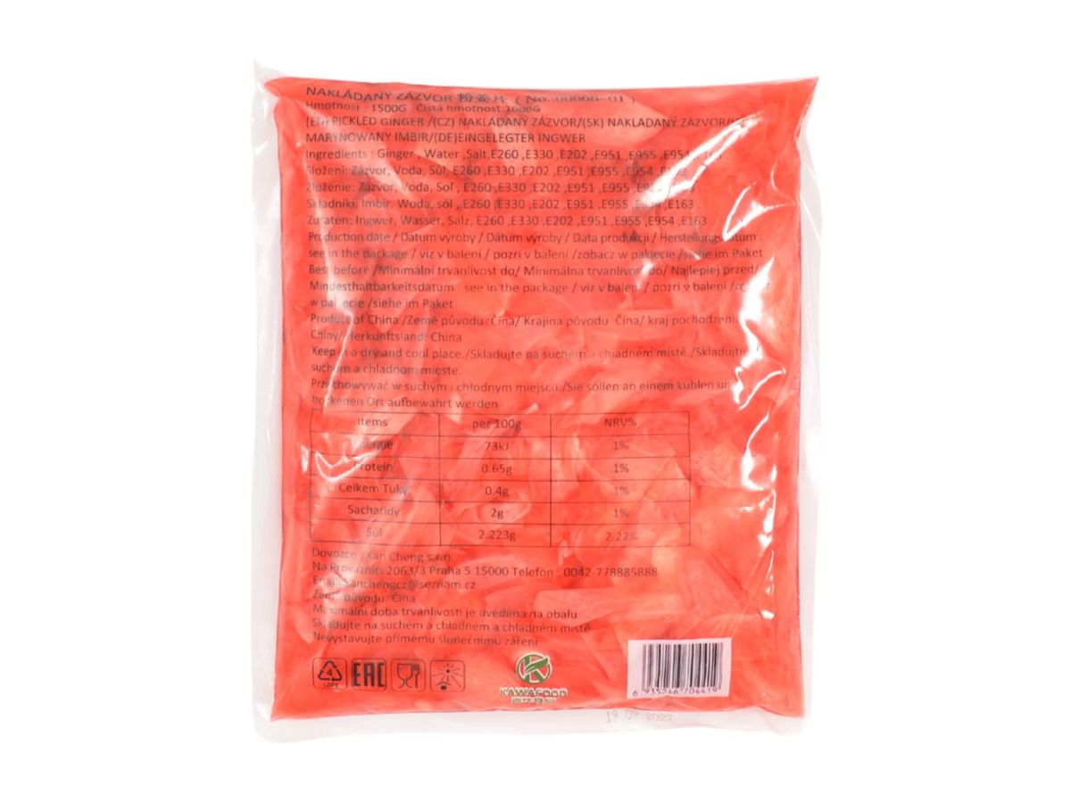 Při objednání tohoto produktu obdržíte nakládaný růžový zázvor v sáčku o obsahu 1 kg s nálevem, v počtu kusů, který si objednáte.