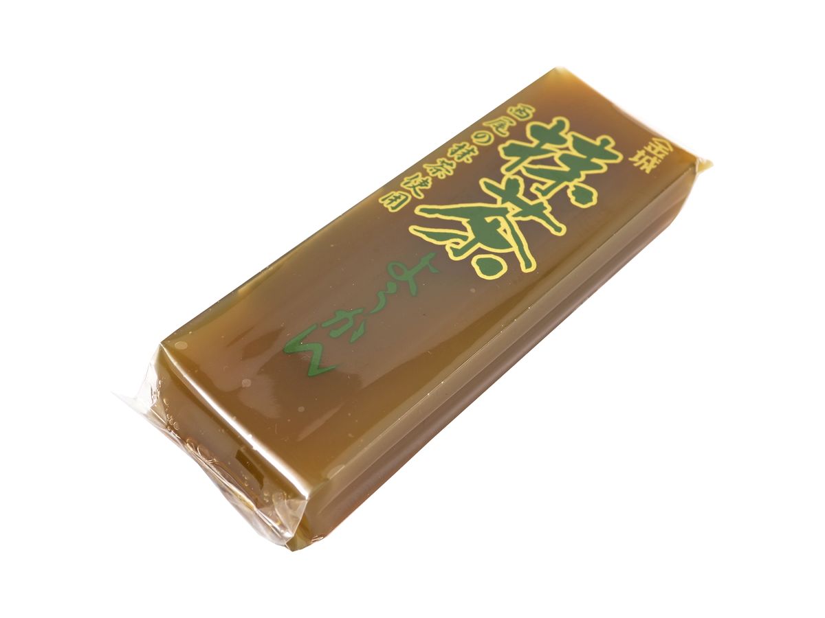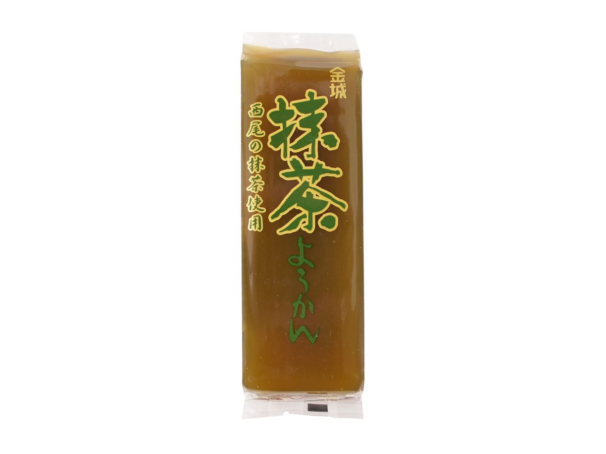 Yokan - japonské sladké želé z červených fazolí s matcha zeleným čajem - se tradičně podává nakrájené na plátky spolu se zeleným čajem.