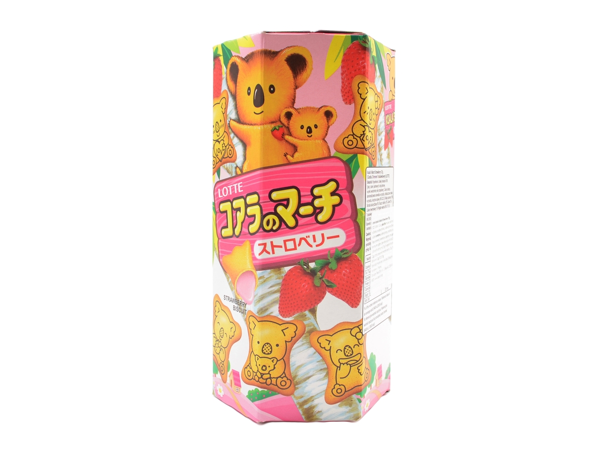 Roztomilé sušenky ve tvaru medvídků koala s jahodovou náplní. Jsou v hezkém balení a hodí se i jako milý dáreček.