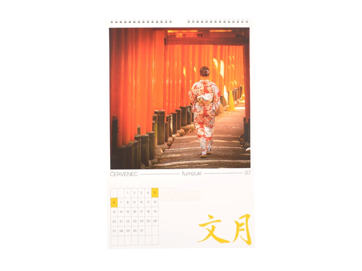 Nástěný kalendář Japan 2026, každý měsíc má k fotografii i krátký textík. Autor fotografií Jan Březina sestavil kalendář ze snímků vybraných z posledních pěti cest do Japonska. Fotografie jsou doplněny nádhernou kaligrafií od japonské umělkyně Mari Kučera, grafikou Kristýny Šťastkové a texty od Ondřeje Hýbla.