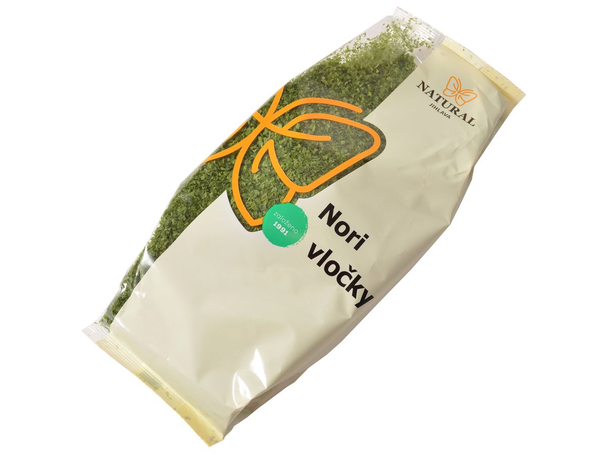 Sušené vločky nori řas využijete jako posyp na hotové nudle, rýži, do salátů i polévek. Mořské řasy jsou bohaté na vitaminy a minerální látky.