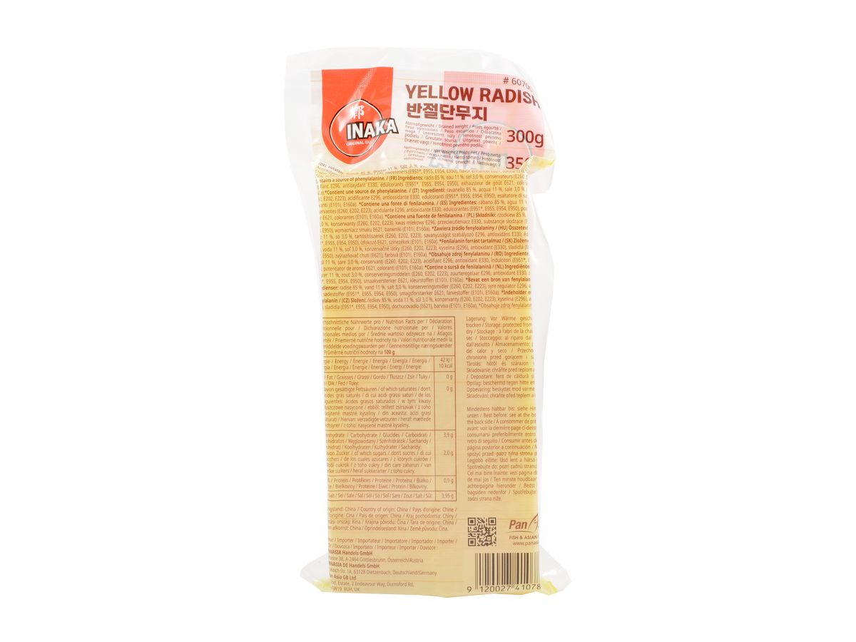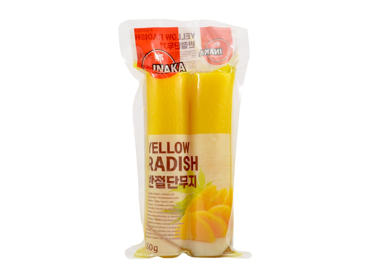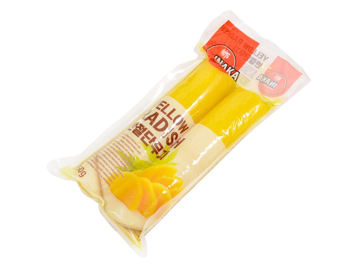 Menší balení nakládané žluté ředkve. Ředkev využijete při přípravě sushi či jako originální přílohu. Kromě názvu takuwantaro je známá také jako daikon.