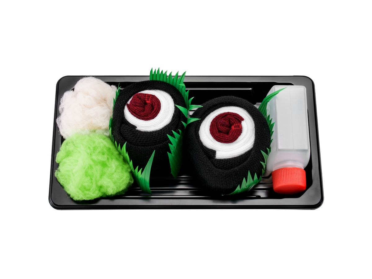 Plastový boxík obsahuje celkem jeden pár ponožek velikosti EU 36-40, který je složený do tvaru maki sushi s tuňákem, a aby ''sushi'' vypadalo reálně, je v setu i prázdná plastová lahvička od sójové omáčky a kousky látky ve tvaru wasabi a zázvoru.