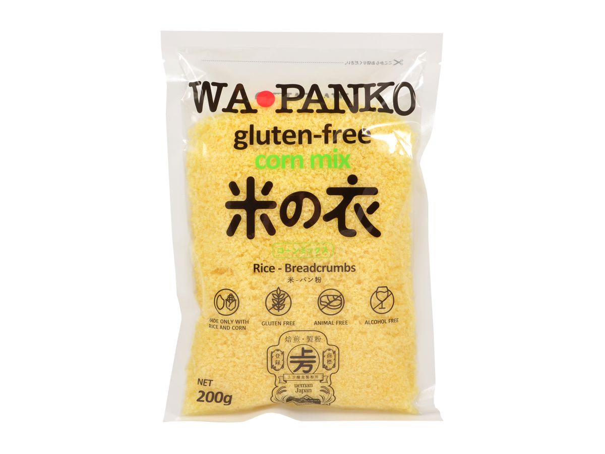 WA PANKO je bezlepková varianta panka, vyrobená výhradně z rýže a kukuřice. Neobsahuje pšenici, ani žádné další přísady. Wa panko absorbuje přibližně o 40 % méně oleje ve srovnání s pšeničnou strouhankou, oblíbené smažené pokrmy tak mohou být o něco zdravější. Použití Wa Panko je jednoduché, stejné jako s běžnou strouhankou - křupavá vnější textura, kterou Wa panko při smažení dodá, ale povýši vaše pokrmy ještě o stupínek výš.