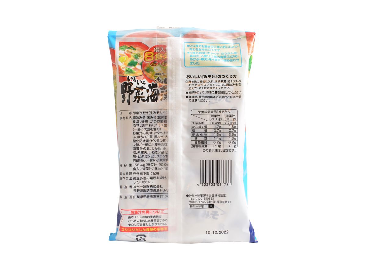 Instantní miso wakame polévka je japonská polévka z miso pasty ze sojových bobů. Balení obsahuje celkem 8 porcí s wakame řasou a zeleninou. Miso i koření stačí zalít horkou vodou.