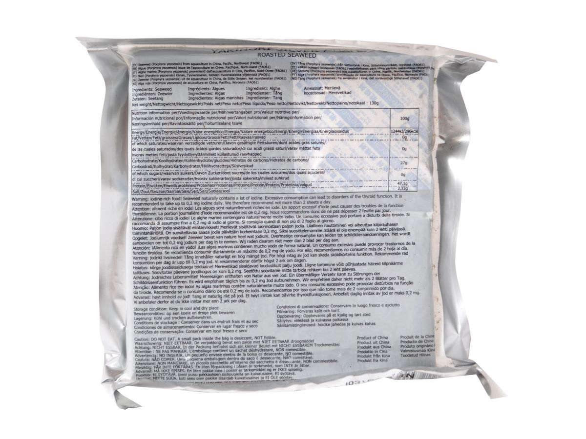 Půlené řasy v balení, které obsahuje 100 kusů. Řasy se díky uzavíratelnému zipu lépe skladují a jsou chráněny před vlhkem. Plátky využijete na přípravu maki sushi nebo temaki sushi, ale i na dochucení dalších pokrmů.