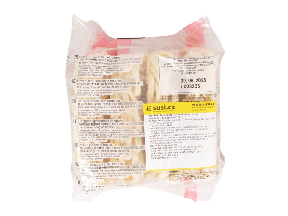 Udon nudle se do Japonska dostaly z Číny a původně se jednalo o jídlo bohatých lidí a šlechty. Pro nás Evropany se mohou tyto nudle zdát nezvykle silné. Udon jsou totiž silné až 5 mm a mají příjemně bohatou texturu. Nudle se jedí hůlkami a podle Japonců je k jejich řádnému vychutnání potřeba hodně srkat. Mražené nudle se po uvaření ihned zamrazí, a tím si nechají svojí čerstvou kvalitu. Jsou vyráběny v japonské Osace.