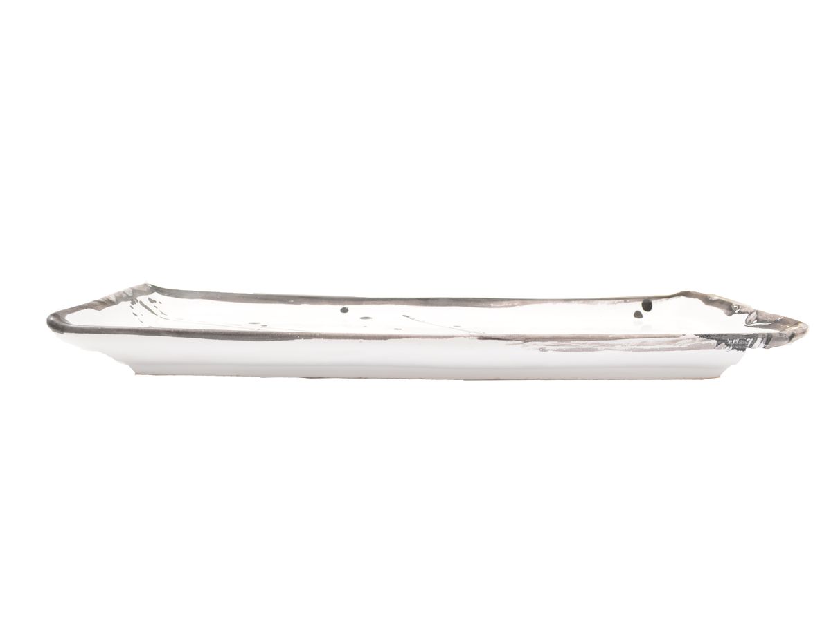 Při objednání tohoto produktu obdržíte bílý tác s černým lemováním a černými kaňkami o rozměrech 32,5 cm x 10,5 cm x 2,5 cm, v počtu kusů, který si objednáte.