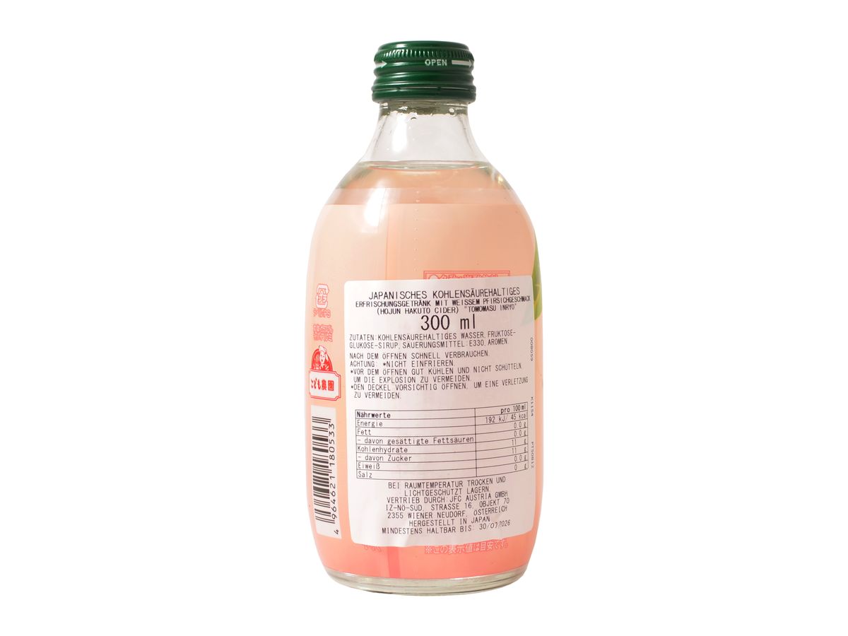 Japonskou osvěžující limonádu s příchutí bílé broskve pijte dobře vychlazenou. V Japonsku je oblíbená pro svou unikátní chuť a svěžest.